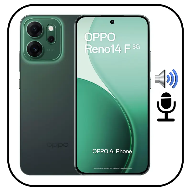 OPPO Reno 14 F 5G con sonido bajo: Reparación de audio con diagnóstico y test. Probamos vídeo y WhatsApp. Trato experto. Garantía. Atención.